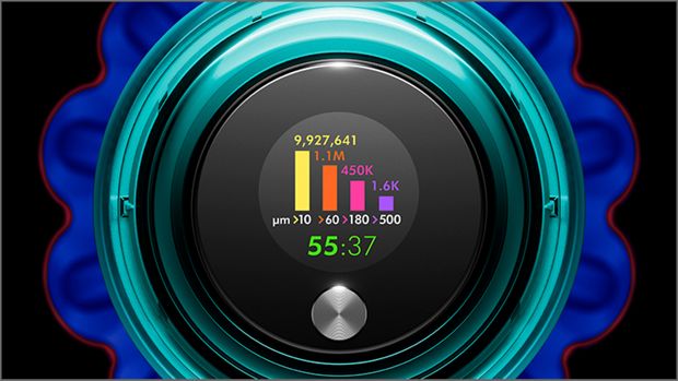 2在自動模式下可達到最佳精準度。 只在自動模式下才提供自動調節吸力功能 根據Dyson內部測試數據,按照家庭平均使用率進行測試。 微塵被定義為小於PM100的微粒。